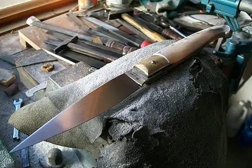 Therefore, the leppa is not to be confused with the resolza knife, even though the latter eventually replaced the former by the 20th century, when the imposition of Italian laws restricting the carrying of dangerous tools first entered into force: while the usage of the sword began to decline, the resolza grew so much in popularity among Sardinians from any background and social class that the traditional knife is now also improperly called leppa.