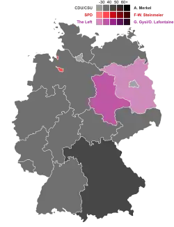 ^ a b The Christian Democratic Union and the Christian Social Union of Bavaria call themselves sister parties. They do not compete against each other in the same states and they form one group within the Bundestag.