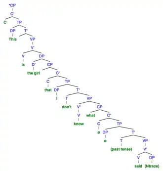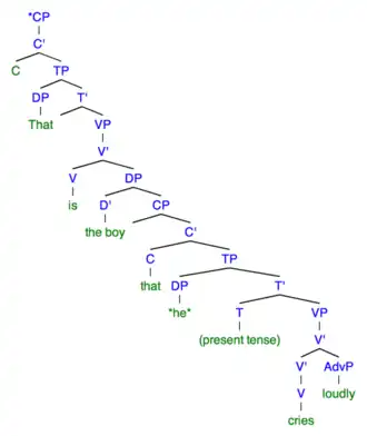 Since distance is generally irrelevant to syntactic principles, it is difficult to build a grammatical account of English resumptive pronouns in such terms.[7] The factor that seems to affect the distribution of resumptives in English most is extractability (i.e., whether a trace is acceptable). Resumptive pronouns are therefore generally in complementary distribution with traces. In (5), where the trace is possible, the resumptive pronoun is not; in (6), where the trace is not possible because of island constraints, the resumptive pronoun is.