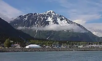 Resurrection Peaks is a 4,727-foot (1,441 m) mountain ridge located in the Kenai Mountains, on the Kenai Peninsula, in the U.S. state of Alaska. The peaks are situated in Chugach National Forest, 3.3 mi (5 km) north of Mount Benson, 3.5 mi (6 km) south of Mount Ascension, and 5 mi (8 km) north of Seward, Alaska. These peaks, marked 4712' and 4665' on the USGS map, together with their ridges and glacier form a distinct group. The peaks overlook the mouth of Resurrection River into Resurrection Bay, and take their name from the bay named since 1792, and the river since 1898. Resurrection Peaks' name was officially adopted in 1969 by the United States Geological Survey.[3]