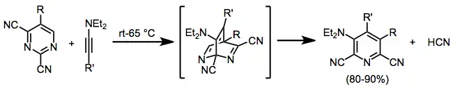 Nitriles may be released in rDA reactions of DA adducts of pyrimidines or pyrazines. The resulting highly substituted pyridines can be difficult to access by other means.[13]