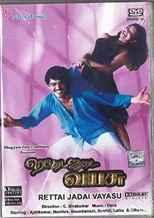 Rettai Jadai Vayasu (transl. Age of double braids) is a 1997 Indian Tamil-language romantic comedy film directed by C. Sivakumar starring Ajith Kumar and Manthra, while Goundamani, Senthil, and Ponvannan play supporting roles. The film's music is composed by Deva with cinematography by A. Karthik Raja and editing by K. Mohan. The film was released on 12 December 1997[1] and was a box office failure.[2]