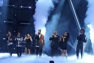 ![]() The coaches performing Michael Jackson's "Man in the Mirror" | |
