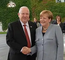 Reuven "Ruvi" Rivlin (Hebrew: רְאוּבֵן "רוּבִי" רִיבְלִין [ʁeʔuˈven ʁivˈlin] ⓘ; born 9 September 1939) is an Israeli politician and lawyer who served as the president of Israel between 2014 and 2021. He is a member of the Likud party. Rivlin was Minister of Communications from 2001 to 2003, and subsequently served as Speaker of the Knesset from 2003 to 2006 and 2009 to 2013. On 10 June 2014, he was elected President of Israel.[1] His term ended on 7 July 2021.