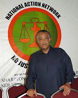 Alfred Charles Sharpton Jr.[2] (born October 3, 1954) is an American civil rights and social justice activist, Baptist minister, radio talk show host, and TV personality, who is also the founder of the National Action Network civil rights organization.[3][4][5] In 2004, he was a candidate for the Democratic nomination for the U.S. presidential election.[6] He hosts a weekday radio talk show, Keepin' It Real, which is nationally syndicated by Urban One, and he is a political analyst and weekend host for MSNBC, hosting PoliticsNation.[7][8][9]