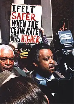 Bernhard Goetz shot four African-American men on a New York City Subway 2 train in Manhattan on December 22, 1984, when they approached him and tried to rob him. At his trial Goetz was acquitted of all charges except for carrying an unlicensed firearm. Sharpton led several marches protesting what he saw as the weak prosecution of the case.[23][24][25] Sharpton and other civil rights leaders said Goetz's actions were racist and requested a federal civil rights investigation.[24] A federal investigation concluded the shooting was due to an attempted robbery and not race.[25]