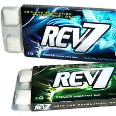 Its name is derived from the word "revolution" (Rev), and the number of attempts it took to achieve the degradable gum (7).[5] Rev7 has two flavours: Natural Peppermint and Natural Spearmint.