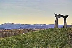 The Whale Tails, as the sculpture is more commonly known by local residents, is a landmark on the side of Interstate 89 between exits 12 and 13, notable partly because Vermont is a landlocked state. The sculpture is located at 44°26′44″N 73°08′35″W / 44.44556°N 73.14306°W, on the right side of the northbound lane. The sculpture has graced the covers of at least two books, Weird New England by Joseph A. Citro[1] and the art history textbook A World of Art by Henry Sayre.[2]