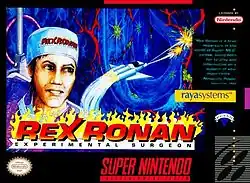 Rex Ronan: Experimental Surgeon is an educational action video game developed by Sculptured Software and published by Raya Systems for the Super Nintendo Entertainment System. The game teaches players about the hazards of smoking tobacco cigarettes.[2][3] The initial development of the game received support from the US Agency for Healthcare Research and Quality.[4] It is a part of educational video game series from Raya that includes Captain Novolin, Packy and Marlon and Bronkie the Bronchiasaurus.