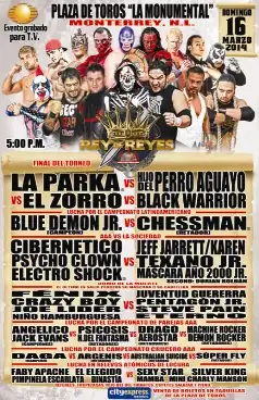 Rey de Reyes (Spanish for "King of Kings") was a professional wrestling event produced by the Lucha Libre AAA World Wide (AAA) promotion, which took take place on March 16, 2014, at Plaza de Toros Monumental Lorenzo Garza in Monterrey, Nuevo León, Mexico.[1][2][3] The event was the 18th event produced under the Rey de Reyes name and also the 18th time that the Rey de Reyes tournament was held.