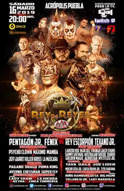 The 2019 Rey de Reyes (Spanish for "King of Kings") was a professional wrestling event produced by the Lucha Libre AAA World Wide, or simply AAA, promotion. The 2019 version was the 23rd year in a row that AAA held a Rey de Reyes show and tournament.