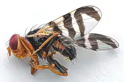 Rhagoletis batava (seabuckthorn fruit fly) is a species of fruit fly in the genus Rhagoletis of the family Tephritidae.[1][2] Rhagoletis batava larvae feed inside fruit flesh, and can be important pest of seabuckthorn. This species is very similar to Rhagoletis cerasi (European cherry fruit fly) [3]