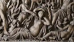 In the Museo Nazionale Romano there is a depiction of Rhea Silvia sleeping during the conception of Romulus and Remus in a Relief.[22]