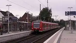 On 1 March 2008, the AVV published the Zukunftskonzept 2015 (future concept 2015), which envisaged the Rhein-Niers-Bahn (RB 33) being operated from both Duisburg and Mönchengladbach and Heinsberg to Aachen via Lindern. Thus, the Rhein-Niers-Bahn would take over operations on the Heinsberg–Lindern railway, with services to be operated by Euregiobahn under contract.[2] The final plans ultimately provided for portion working, in which two units of class 425 sets running from Aachen in double traction would be uncoupled.[3] This concept was finally implemented at the timetable change on 15 December 2013.