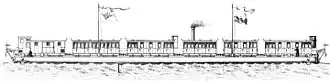 Five pontoons for the transport of wagons were ordered from Cologne Maschinenbau AG (a subsidiary of the Berlin-Anhalt Railway Company) in Cologne-Bayenthal. The 47 metre-long pontoons, Ruhr, Lahn and Mosel could carry eight freight wagons cars or five carriages. The fourth pontoon, the 63 metre-long Rhein carried ten freight wagons or seven carriages. The fifth pontoon, Eisponte carried five wagons. A 30 horsepower steam engine was installed at each end of the ferry route, which hauled a cable across the Rhine, connected via a 2.5 metre-long pulley to each pontoon. The wagons ran over a mobile pier on to the pontoon or off it on the other shore. The pontoons ran on a 65 mm-thick rope guide cable over the river. A second cable was used to tow; it was hauled by the pontoon steam engine by means of two pulleys.