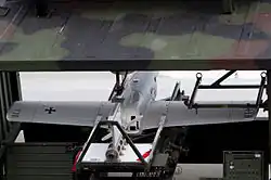 The Taifun attack drone was a concept of an armed variant fitted with an intelligent millimeter-wave radar seeker that perform search and destroy attacks autonomously. It destroys its target with a hollow-charge warhead. However, the German Army decided against this concept in favor of the IAI Harop.