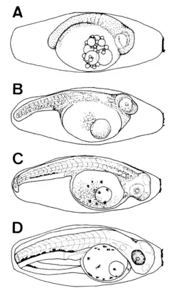- ^ a b c d Sakai, Harumi; Yasuda, Fujio (1978). "Development of Eggs and Larvae of the Freshwater Goby, Rhinogobius brunneus". Japanese Journal of Ichthyology. 25 (2): 92–100. doi:10.11369/jji1950.25.92.