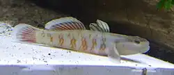 Rhinogobius zhoui, known as Zhou's scarlet goby in the aquarium trade,[1] is a species of freshwater goby from the subfamily Gobionellinae which was discovered in a stream on Lianhua Mountain in Haifeng County, Guangdong Province, China.[2] This goby also native in the other part of Guangdong Province and Guangxi Province, for some similar described species,which are called Resemble Zhou's Rhinogobius (类周氏吻虾虎) and New Red Rhinogobius (新红吻虾虎) in China, are found in streams of those places.[3]