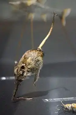 Rhinogradentia has been included in a number of museum exhibitions and collections. The National Museum of Natural History's Nasoperferator announcement was accompanied by a two-month exhibit honoring the animals, featuring purported stuffed specimens in its gallery of extinct species.[26] Mock taxidermies of rhinogrades have also been included in an exhibit at the Musée d'ethnographie de Neuchâtel,[27] and in the permanent collections of the Musée zoologique de la ville de Strasbourg and the Salzburg Haus der Natur.[28][29][2]