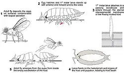 - ^ a b c d Cerretti, P.; Logiudice, G.; Pape, T. (2014). "Remarable Rhinophoridae in a growing generic genealogy (Diptera: Calyptrate, Oestroidea)". Systematic Entomology. 39 (4): 660–690. Bibcode:2014SysEn..39..660C. doi:10.1111/syen.12080. S2CID 83536162.