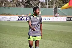 Rhoda Mulaudzi[3] (born 2 December 1989) is a former South African women's soccer player who played as a forward. She is the current assistant coach at Mamelodi Sundowns Ladies and the South Africa women's under-17.[4] She is also a coach for the Mamelodi Sundowns Ladies Academy.