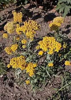 Rhodanthe humboltiana, commonly known as the golden cluster everlasting,[2] is a flowering annual in the family Asteraceae. It is a small, upright, branching plant with yellow flowers, and is endemic to Western Australia.