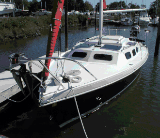 The boat includes a mast-furling mainsail without sail battens and roller furling jib. The cabin has a "pop-top" to increase headroom, two opening ports forward of the pop-top and fixed ports on the front of the coach house.[9]