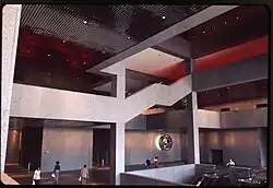 The tower's interior has frequently been used for art exhibits. These include the Young People's Art Exhibit, sponsored by the Ohio Art Education Association in 2001.[30] An Ohio Art League exhibition in 1992 prompted complaints from the building's tenants. Some of the pieces impeded hallways;[31] other works in the exhibit received complaints due to nudity or their statements on sexism and reproductive rights.[32] It was reported in 1973 that tower would feature its own commissioned artwork, at a cost of $300,000 to $400,000, including graphics, sculptures, and tapestries with themes of Ohio history, culture, geography, and resources.[33] In 1974, a proposal aimed for $1,175,000 for paintings, gardens, sculptures, and other artworks, including a rooftop garden and sculpture;[34] $800,000 was estimated to have been spent on the program in June 1974.[35]