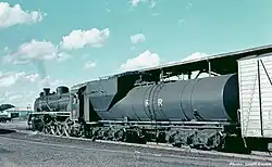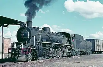 A single 19C class, no. 336, was built by Henschel in 1954 as a condensing locomotive. Nicknamed "Silent Suzie", it was intended for use in Botswana, but was unpopular with crews, and was rebuilt into a non-condensing 19th Class in 1958 after being involved in a collision.[4] The condensing tender was rebuilt to a Torpedo tender by mounting a tank and coal bunker, supplied locally in Bulawayo, on the frame.[3][5] This rebuilt tender is the one paired with no. 330 which is preserved in the Bulawayo Railway Museum.[6]