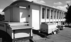 A single storey building housed offices, a canteen and kitchen; a secretarial/administrative office (two ladies) and a reception area. The heart of the building was dwarfed by the two-storey high studio block. An outdoor prefabricated canteen building was erected in 1976 and at the rear of the building, a concrete ramp led to the engineering workshop, another prefab construction. Adjacent to the studio, a props room housed programme sets, advertising materials and other sundries.