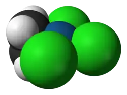 Discoveries in organometallic chemistry have led to important insights into chemical bonding. Zeise's salt, K[PtCl3(C2H4)]·H2O, was reported in 1831[5] and Mond's discovery of nickel tetracarbonyl (Ni(CO)4) occurred in 1888.[27] Each contained a bond between a metal centre and small molecule, ethylene in the case of Zeise's salt and carbon monoxide in the case of nickel tetracarbonyl.[6] The space-filling model of the anion of Zeise's salt (image at left)[25][26] shows direct bonding between the platinum metal centre (shown in blue) and the carbon atoms (shown in black) of the ethylene ligand; such metal–carbon bonds are the defining characteristic of organometallic species. Bonding models were unable to explain the nature of such metal–alkene bonds until the Dewar–Chatt–Duncanson model was proposed in the 1950s.[12][7][28] The original formulation covered only metal–alkene bonds[27] but the model was expanded over time to cover systems like metal carbonyls (including [Ni(CO)4]) where π backbonding is important.[28]