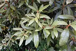 Rhododendron coeloneurum (粗脉杜鹃) is a rhododendron species native to northern and southeastern Guizhou, southern Sichuan, and northeastern Yunnan, China, where it grows at altitudes of 1,200–2,300 m (3,900–7,500 ft). It is a tree that typically grows to 3–8 m (9.8–26.2 ft) in height, with leathery leaves that are oblanceolate to oblong-elliptic, and 7–12 × 2.5–4 cm in size. The flowers are pink to purplish, with purple spots.
