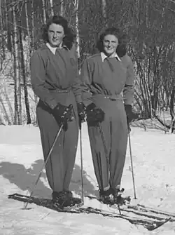 They were Canada's first official women's Olympic alpine ski team, and competed in Canada and the United States from 1942 to 1948, representing the Penguin Ski Club. They were married in a double ceremony at St. Stephen's Church in Montreal on November 13, 1948. They continued to compete through to 1959 even after they had children. As soon as they began competing in 1942, they won almost every race they entered, in Canada and the United States - including the Kate Smith International, the Alta Cup, the Roch Cup, the Silver Dollar Derby and in the 1950s, the Harriman Cup. In 1943 Rhoda swept the Taschereau downhill at Mont Tremblant, Quebec, winning by 24 seconds, bettering both the women and all the men in the competition. Rhona placed second among the women, ninth overall.