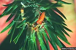 The larvae feed on various pine species.