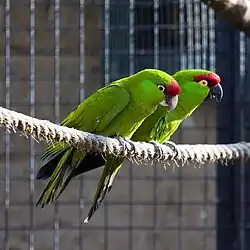 - ^ Urantowka, A.D.; Strzała, T.; Grabowski, K.A. (2014). "Complete mitochondrial genome of endangered Maroon-fronted Parrot (Rhynchopsitta terrisi) - conspecific relation of the species with Thick-billed Parrot (Rhynchopsitta pachyrhyncha)". Mitochondrial DNA. 25 (6): 424–426. doi:10.3109/19401736.2013.809440. PMID 23841618. S2CID 7865866.