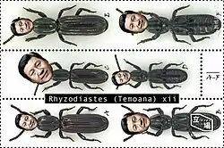 Rhyzodiastes xii (Chinese: 习氏狼条脊甲), known alternatively as the Daddy Xi beetle (Chinese: 习大大甲虫),[2] is a species of ground beetle that attracted media attention in 2016, when an entomologist named it after the paramount leader of China, Xi Jinping, who is the General Secretary of the Chinese Communist Party and President of China.[3]
