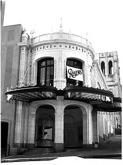 The Rialto Theatre in Tacoma, Washington was built in 1918 to showcase movies. Its design reflects the affluence following World War I. It reflects the character of a palace and is the result of efforts by entrepreneur Henry T. Moore and Tacoma architect Roland E. Borhek.[2] Designed to hold 1500 patrons (revised to 742 today) and retail space. The two-and-a-half-story structure is in the historic downtown of Tacoma. The area has long been associated with theaters and entertainment. The theater is freestanding, with a dramatic view on an incline with a classical façade sheathed of glazed white terra cotta. Both the interior and exterior retain most of the original design of Roland E. Borhek. The theater has an auditorium, proscenium with stage, a relocated projection booth, balcony, lobby, and commercial space. It has been altered with the removal of the storefronts and marquee. On the inside, the lobby's decorative ceiling has been hidden and the concession areas expanded. [2]
