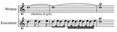 Ribattuta or Ribattuta di gola is a musical ornament found in Italian and German works of the 17th and 18th centuries.