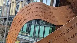 Ribbons (2024) is an outdoor sculpture in Leeds, England, by Pippa Hale, which was unveiled on 12 October 2024.[1] Shaped like entwined ribbons, this corten steel sculpture celebrates and commemorates the achievements of women in Leeds, by featuring the names of 383 women nominated by the public. This redresses the gender imbalance in public art in Leeds.