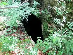 Ribnica is the site of a mass grave associated with the Second World War. The Žiglovica Cave Mass Grave (Slovene: Grobišče Jama Žiglovica) is located northeast of the town, in a former hay field on a slope overgrown with grass and sparse woods. It contains the remains of 14 civilians from Prigorica, Žlebič, and Pri Cerkvi–Struge that were murdered on 28 July 1942.[4] The men were abducted by a Partisan patrol while clearing woods along the railway. Some of the victims were thrown into the shaft alive, and one of them managed to pull a Partisan in with him. After the murders, the local Partisan political activist insisted that the men had merely been sent to White Carniola for punitive labor, but the murders were acknowledged by some of the Partisan participants.[5]