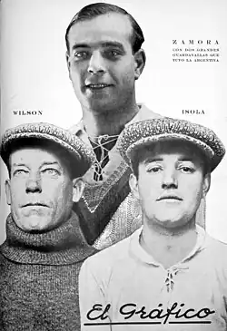 Spanish goalkeeper Ricardo Zamora is the trophy's namesake.Ricardo Zamora, with two Argentine goalkeepers on the cover of El Gráfico in 1926