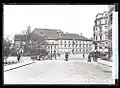 The Lindenau tram line (first a horse-drawn railway, later a tram) crossed the square diagonally from 22 July 1882, crossing the tracks of the Ring tram line coming from the Brühl and turning into the Ranstädter Steinweg. The line was closed on 20 July 1964.[5]