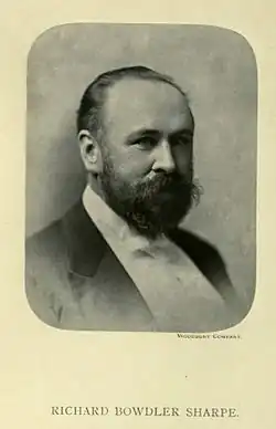 Richard was born in London, the first son of Thomas Bowdler Sharpe. His grandfather, Reverend Lancelot Sharpe was Rector of All Hallows Staining. His father was a publisher on Skinner Street and was best known for being the publisher of Sharpe's London Magazine, an illustrated periodical (weekly but monthly from 1847). His care from the age of six was under an aunt, Magdalen Wallace, widow of the headmaster at Grammar School in Sevenoaks and went to school in Brighton. At nine he studied at The King's School, Peterborough receiving a King's Scholarship. He then moved to Loughborough Grammar School. He returned to London at the age of sixteen and worked as a clerk with W. H. Smith & Sons. He already took an interest in ornithology and was interested in writing a monograph on the kingfishers. After two years, in 1865, he joined the company of the bookseller Bernard Quaritch and had an opportunity to examine ornithological books and began to work in earnest on his monograph, purchasing specimens of kingfishers from a meagre income. At nineteen, in 1867, he became a librarian at the Zoological Society of London on the recommendation of Osbert Salvin and Philip Sclater and he completed his Monograph of the Kingfishers (1868–71) during this period. The book was produced in parts with 121 illustrations.[1]