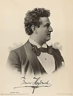 After graduating with the highest honors from the Conservatory in 1882, Bruno would go onto tour across continental Europe as a professional tenor. In spite of this success, he struggled to maintain a solo career as a tenor as he continued to financially support his mother and younger sisters.[4] During this time, highly influenced by the popular works of Richard Wagner, Bruno began writing several musical compositions. He would go onto release the first of his five operas, Amen, in 1895.[5]