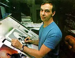 ![]() Corben working on the cover for Jeremy Brood #1: Relativity (1982) | |