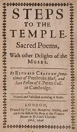 - ^ Richard Crashaw, Steps to the Temple. Sacred Poems, With other Delights of the Muses (London: Printed for Humphrey Moseley, 1648). (second edition, expanded)