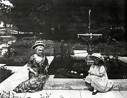 Miller moved back to the United States about the time World War I began. Because of his friendship with Guy Rose in Giverny, Miller moved west to the Los Angeles suburb of Pasadena to teach at the Stickney Memorial Art School. When Miller settled in Pasadena, he could not find a studio that was pleasing, with the type of filtered light he liked to use for his painting. So instead, he painted at the home of the wealthy painter and patron of the arts, Eva Scott Fenyes.[6] A number of the paintings he is known to have painted in California are clearly sited there.[7] There is a fountain and a pool at the Fenyes mansion that appear in several of Miller's paintings. Additionally, he painted a portrait of Mrs. Fenyes' grand daughter and a large nude which is in the collection of the Pasadena Museum of History today, located on the grounds of the Fenyes estate.[8]