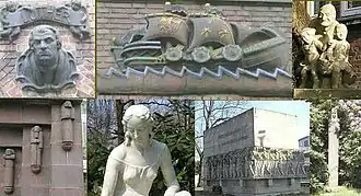 Kuöhl worked prolifically in the 1920s and 1930s in terra cotta, stone, and ceramics, developing a weatherproof Baukeramik. His work is incorporated in many buildings, bridges and monuments in Hamburg and other northern German cities. Kuöhl's Hamburg war memorial, erected to commemorate those of the Second Hanseatic Infantry Regiment number 76 who died in the Franco-Prussian War and the First World War, is typical of the ones erected during the Third Reich and is one of the few remaining. The monument, with its almost mocking inscription, Germany must live, even if we have to die, continues to be swathed in controversy, with much public sentiment favoring removing it while others, particularly veterans groups, demand that it remain.[1]