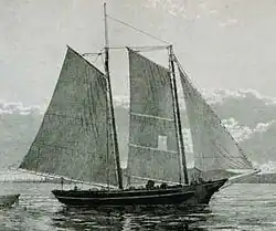 In 1870, Murphy served as skipper of the 49-ton Gloucester-based schooner Oriental, built in 1846.[13] In 1874, Murphy was listed as master of the Essex-built Laughing Water, which weighed 49 tons and was built in 1858.[14] In August 1883, under the command of a subsequent captain, this vessel was severely damaged in a hurricane. According to the New York Times, following this storm, "[t]he schooner Laughing Water succeeded in bringing her hull into port, but that was about all that was left of her."[15] In April 1893, the Laughing Water rescued the surviving crewmembers of the Gloucester schooner Genesta, which capsized off Barnegat, New Jersey.[16] In 1895, the Laughing Water sank without loss of life after it was run down by another vessel.