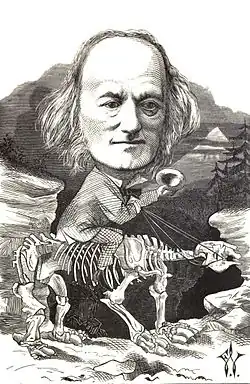 Owen produced a vast array of scientific work, but is probably best remembered today for coining the word Dinosauria (meaning "Terrible Reptile" or "Fearfully Great Reptile").[2][3] An outspoken critic of Charles Darwin's theory of evolution by natural selection, Owen agreed with Darwin that evolution occurred but thought it was more complex than outlined in Darwin's On the Origin of Species.[4][page range too broad] Owen's approach to evolution can be considered to have anticipated the issues that have gained greater attention with the recent emergence of evolutionary developmental biology.[5]